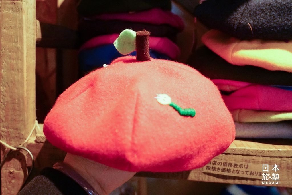 可愛的蘋果帽,有多種色彩,帽頂上還有一隻毛毛蟲,煞是可愛