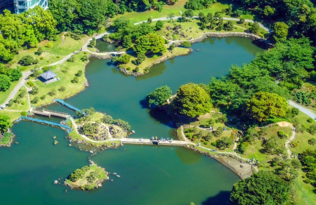 喜歡日式庭園的人絕對不錯過這裡。庭園面積非常廣大約有25萬平方公尺,春天有櫻花盛開、秋天有大斯波菊隨風搖曳,一年四季都能見到不同的美景。在江戶時期這裡曾是具有代表性的大名庭園。必看景觀有「潮入之池」、「獵鴨場」、「三百年之松」與「中島的茶屋」。