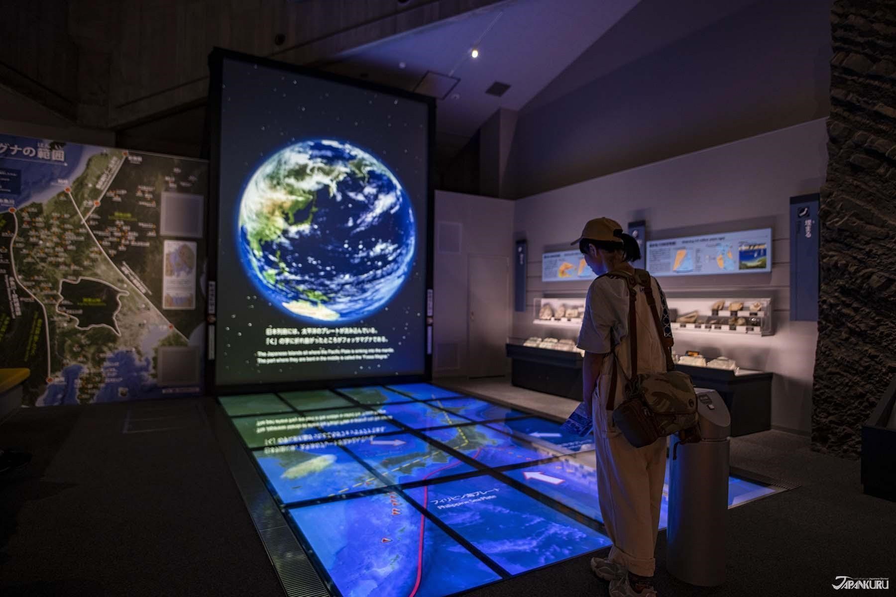 作為世界地質公園,除了具體的地質景觀,自然也少不了能帶著大家探索地質奧秘的博物館。在美山公園中的中央大地溝博物館,是糸魚川聯合國教科文組織世界地質公園情報資訊站,館內展覽內容以當地各個地質景點、大地溝為基礎,結合動畫、實物、文字等多元的方式,解說包括地景形成原因等自然地理知識。