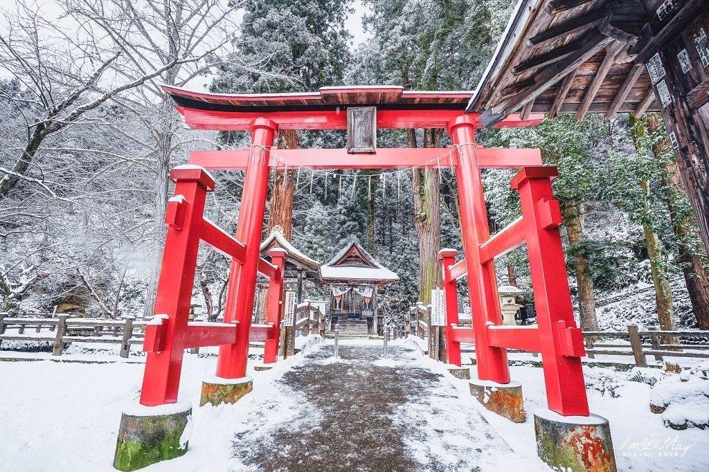 朱紅色的鳥居在雪白世界裡特別顯眼