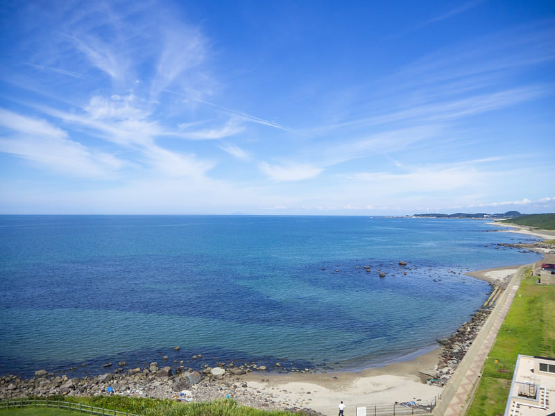 位於海邊的「道の駅象潟 ねむの丘」是東北地區最大級的休息站,在六層樓的空間裡聚集了物產館、餐廳、宴會場、溫泉大浴場及展望台等複合式建築,而在建築物前方還有能免費提供使用的足湯,走累了就來這邊休息一下,從展望台除了能看到美麗的日本海外,還能看到一部分的九十九島絕景。