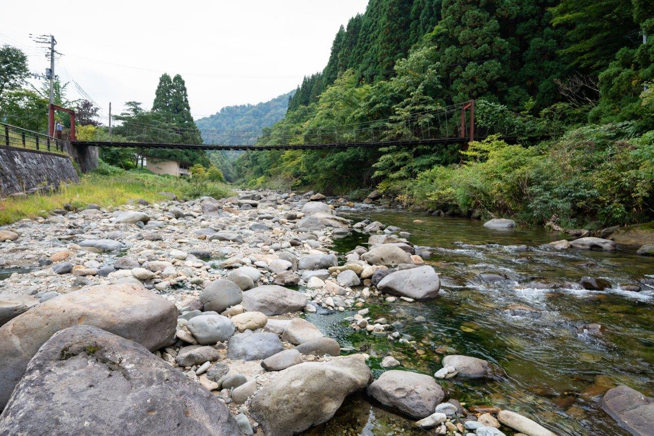 沿著役內川的河堤走,前方有個往下到河床的樓梯,沿著樓梯往下走就抵達了!若有大水時,河床可能會被淹沒,就無法建造露天風呂,如果下大雨前後前來時,要特別注意。