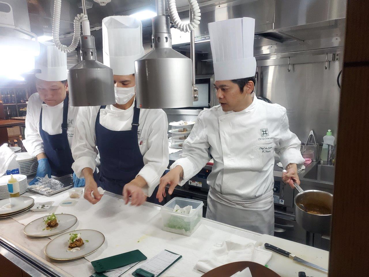因為列車是一直在移動前進中的,為了讓主廚們能發揮出平時在餐廳的水準,「四季島」會提前2-3個月起就安排主廚和助手們上車,適應狹小的廚房空間、適應車內可以使用的爐具、適應叩隆叩隆搖晃前進著的列車。