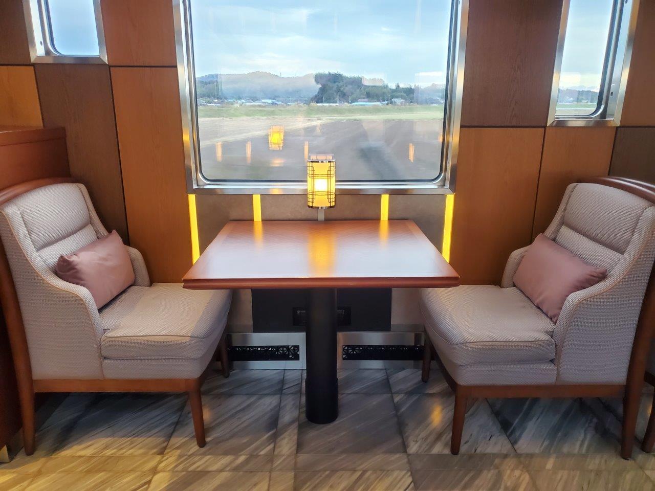 「四季島」行程中的用餐地點,除了下車觀光時會安排在當地的高級餐廳或料亭用餐之外,其他時候都是在列車上的6號車廂裡面用餐。