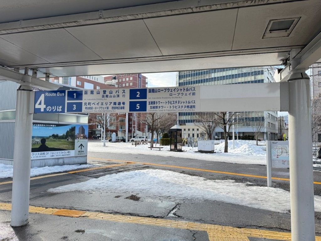 5系統公車從JR函館站出發,一路行經五稜郭塔、湯川溫泉、特拉皮斯汀修道院之後抵達函館機場,然後再從函館機場沿著相同站牌回到JR函館站。