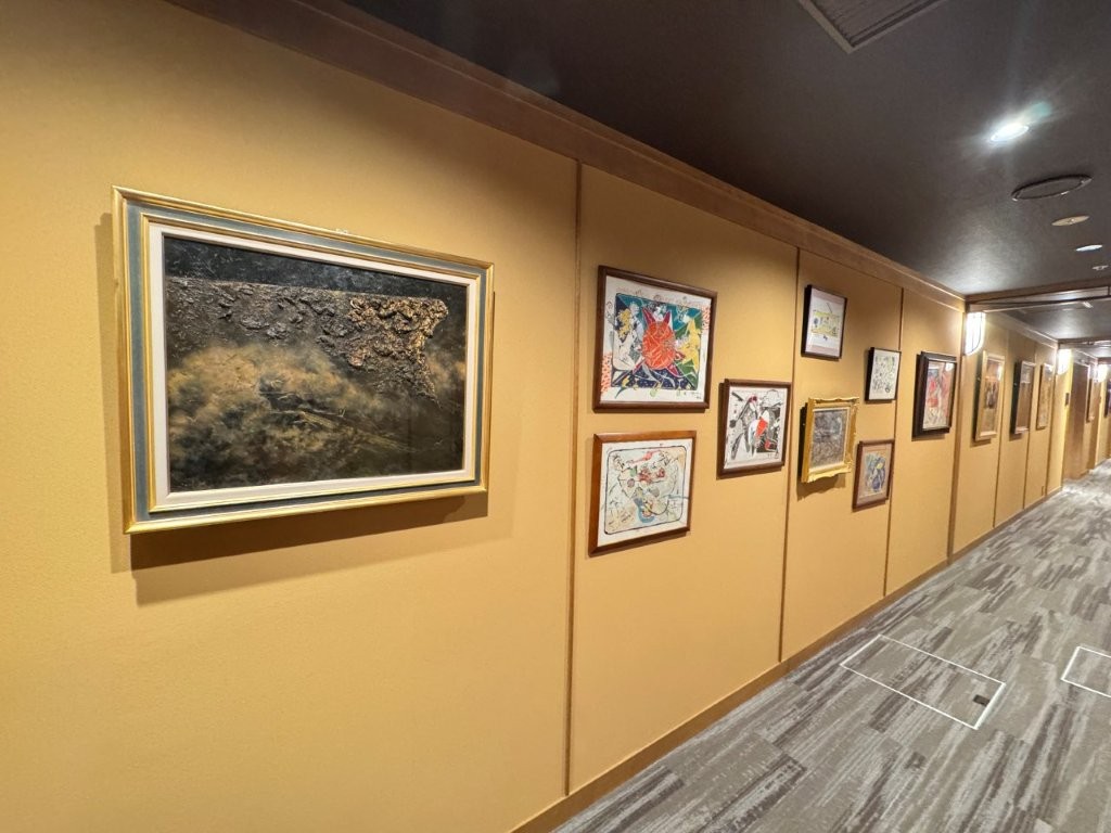 6樓整體是細長型的空間,以櫃檯為中心分成左右兩側。兩側的牆面上掛滿了青森出身的國際藝術家-山內文夫的畫作。因為是不同時期完成的作品,可以看得出來有些風格很童趣,有些很抽象。如果剛剛在4樓的那幅巨作讓你印象深刻的話,那麼宛如藝廊一般的6樓會讓你更加驚豔。