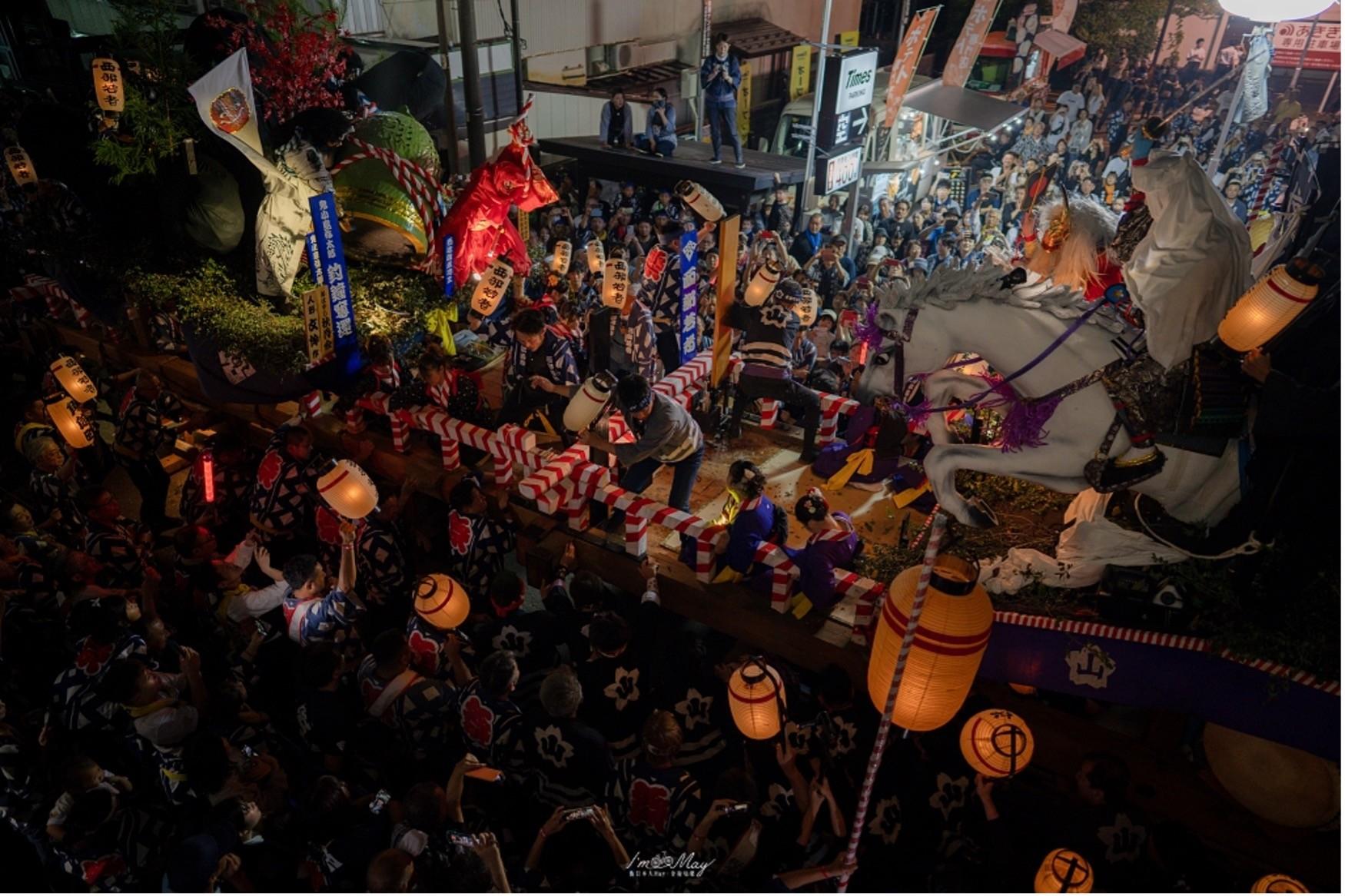 其實從白天開始,就能看到山車在角館的道路上巡行,看到許多年輕人參加,這也代表傳的重要。 傍晚在武家屋敷周邊觀賞角館祭典最精華的環節——山車巡行「やまぶっつけ」。 觀賞裝飾華麗的山車(Dashi)在街頭交會時,年輕人以木製底座相互衝撞,展現出武士之地的豪邁與熱情。