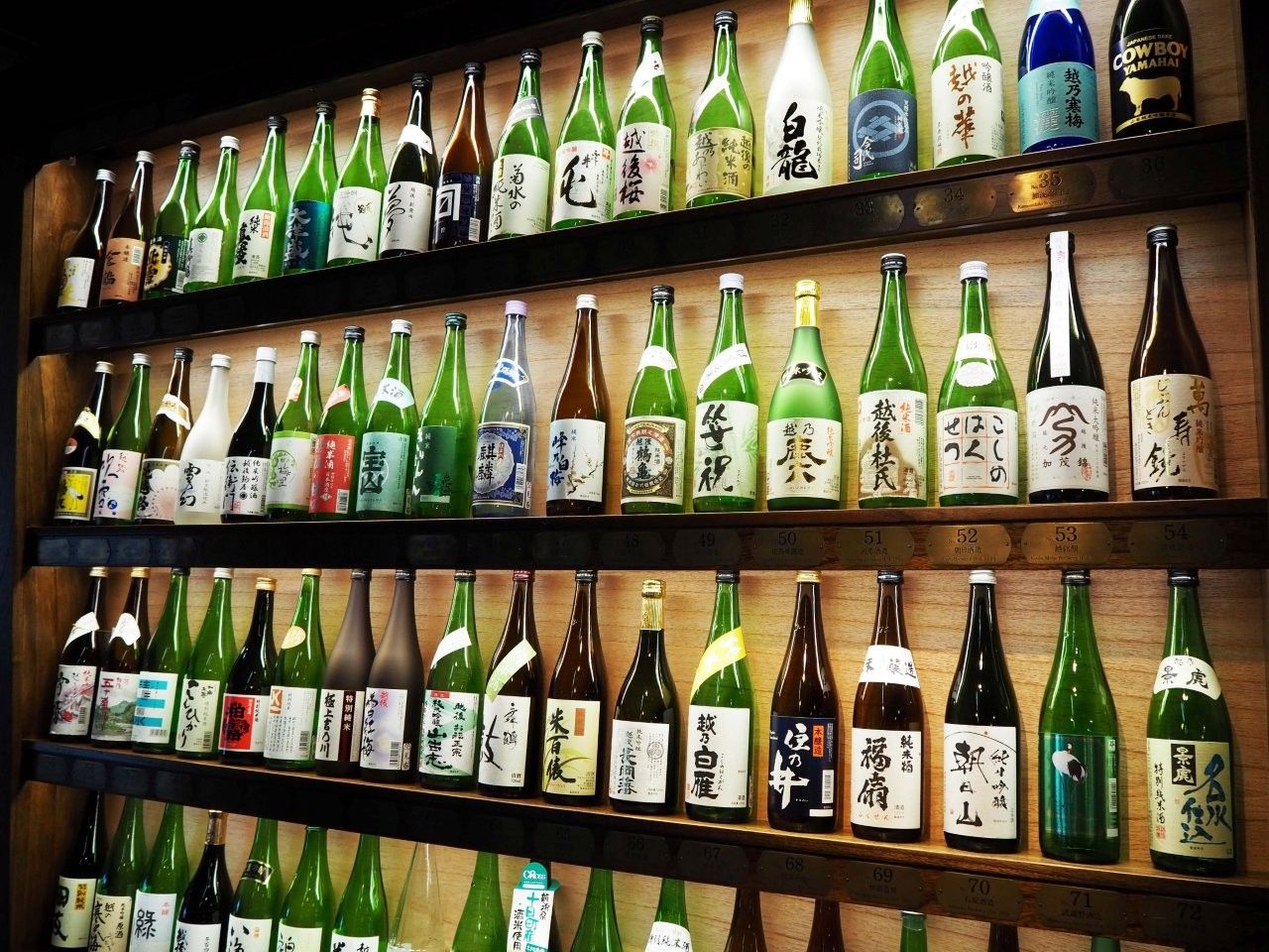 Ponshu館(ぽんしゅ館)完全就是日本酒迷的天堂! 新潟全縣的酒藏銘柄+限定酒款排滿一整面牆。 一次兌換5個代幣,最多可以品飲到5杯的品酒小旅行。