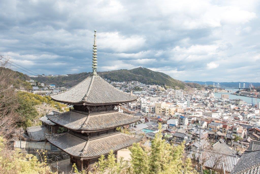 隨著指標前往貓之細道的路上,會遇到天寧寺的三重塔(名稱為「海雲塔」),不少旅客或者觀光海報會拍攝天寧寺海雲塔與尾道市區的照片作為打卡或宣傳。