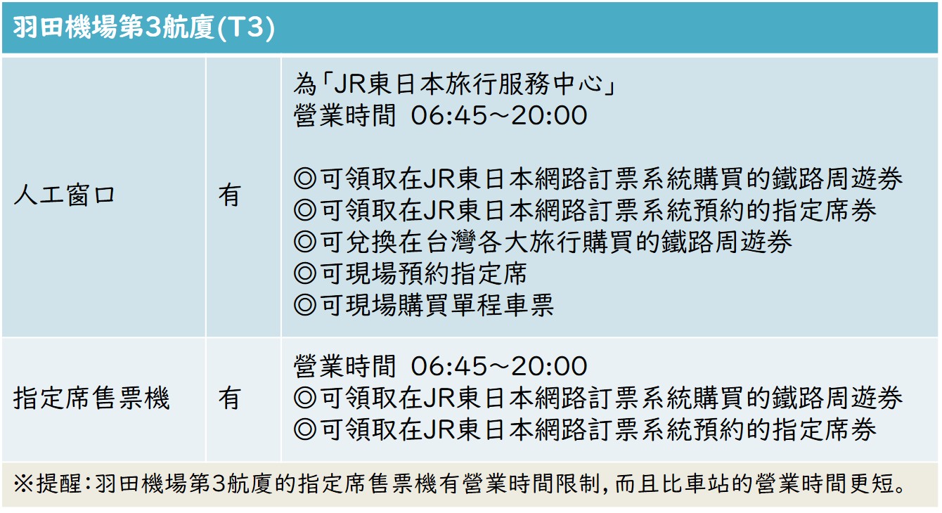 ✔ 最遲須在發車之前領取這張指定席券。 ✔ 取票窗口與營業時間查詢 >>請按此 ✔ 無法在東京站・品川站的JR東海指定席售票機取票。(因為那是JR東海的機器,不是我們JR東日本的) ✔ 羽田機場不屬於JR東日本的營運範圍。若要在羽田機場取票,敬請留意以下事項: