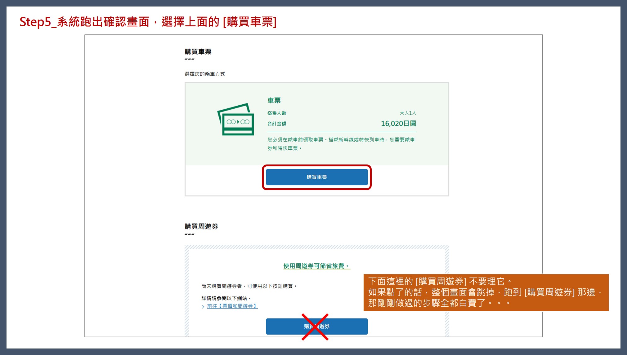因為我們是使用鐵路周遊券加價搭乘,所以必須從最下面的 [購買車票] 進去。