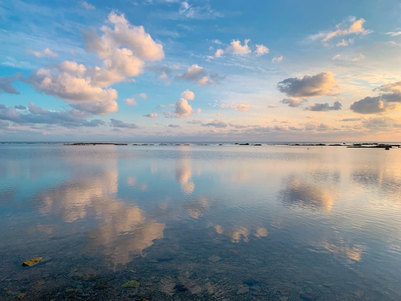 在平靜無風的日子裡,天空會宛如鏡像一般倒映在海面上。因此,鵜之崎海岸也被稱為「秋田的烏尤尼鹽湖(天空之鏡)」。 ※因為是自然景觀,海面呈現出的景象會隨天氣與風況而有所不同。