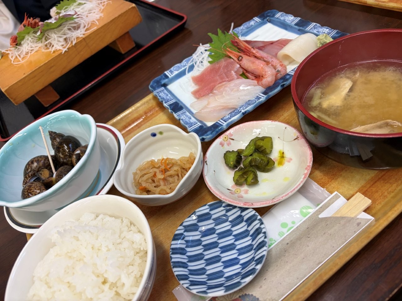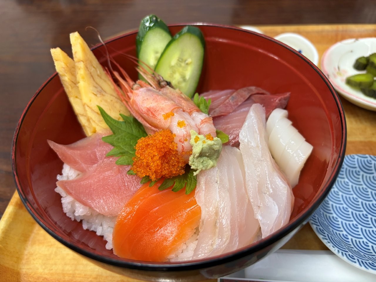 騎了一段路,肚子有點小餓,港口旁邊的男鹿海鮮市場有海鮮丼、海膽丼、生魚片定食等滿滿男鹿海味的餐點。新鮮海產閃閃發亮,讓人忍不住想在吃之前多拍幾張照片。