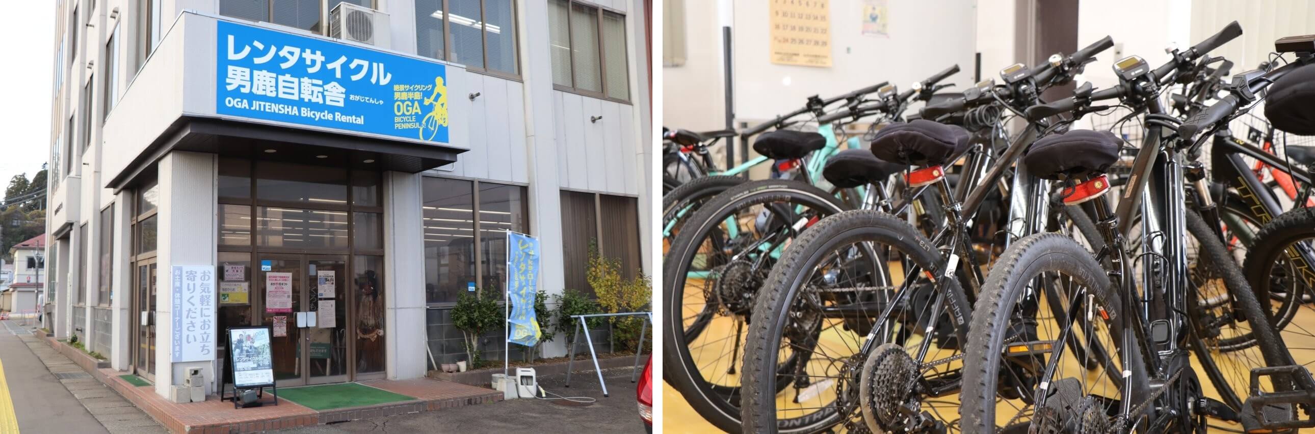 從秋田抵達男鹿站後,先去租借自行車吧。 從男鹿站步行2分鐘即可抵達租車店「男鹿自転舍」,親切的老闆會詳細說明各種自行車的特色。