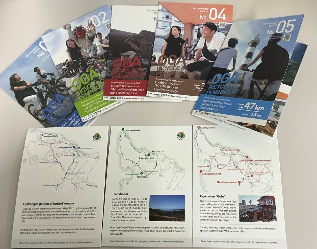 店內擺放著數種不同的男鹿半島自行車地圖。