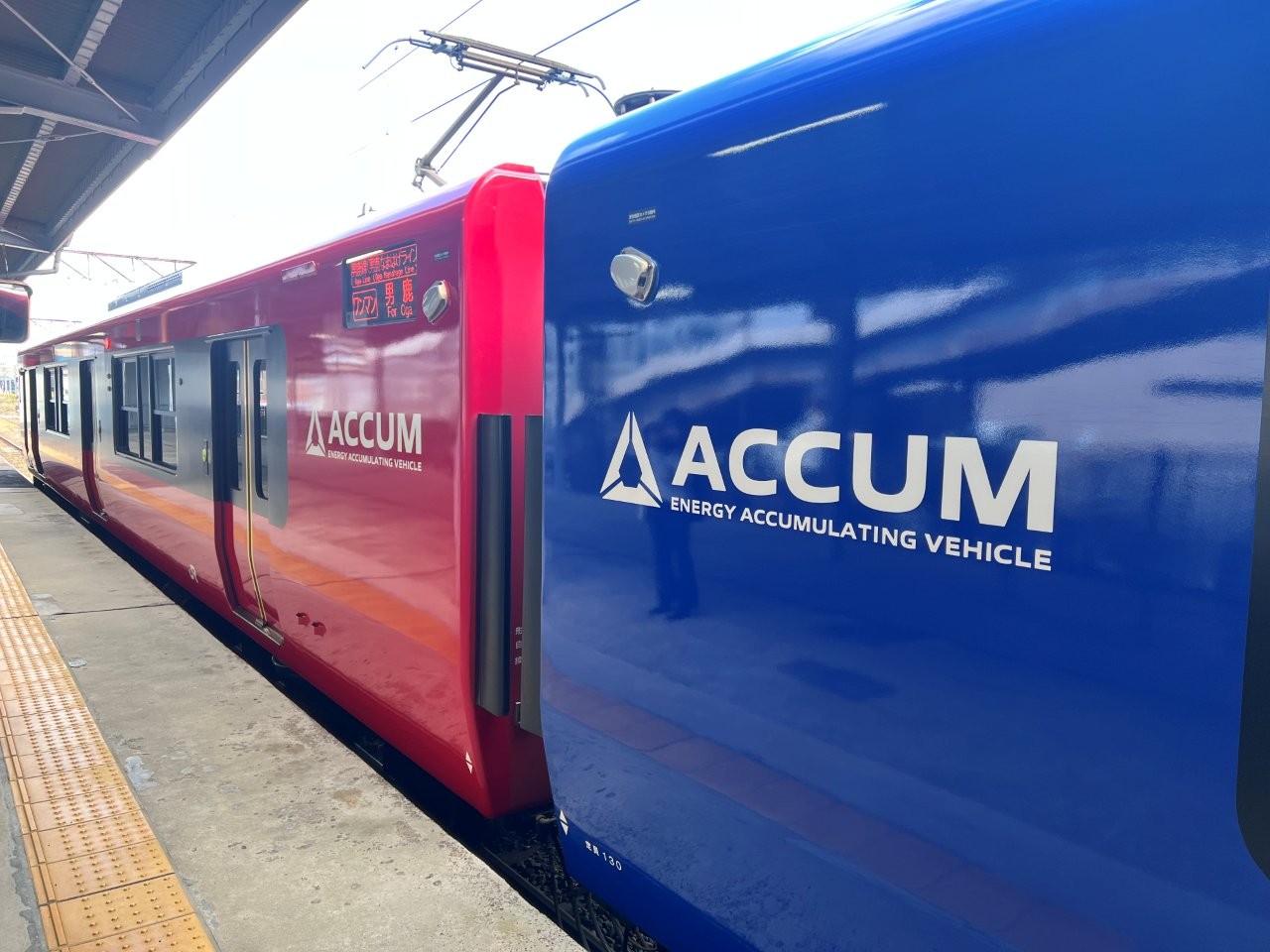 紅藍配色的男鹿線列車,設計靈感來自男鹿半島著名的「生剝鬼」,十分可愛。