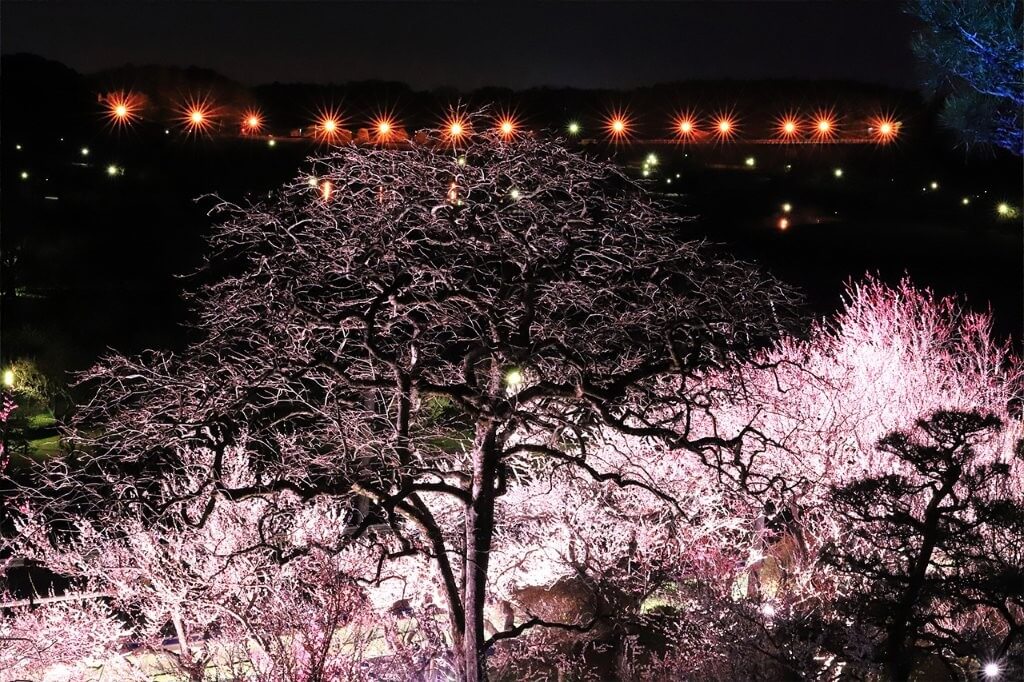 作為茨城的行政中心,水戶市擁有名列「日本三大名園」之一的 偕樂園 。這座庭園不僅是著名的風景名勝,更承載著江戶時代水戶藩主的設計哲學與愛民之心: • 「與民偕樂」的建造理念:偕樂園由水戶藩第九代藩主德川齊昭親自選址與設計,於 1842 年正式開放。園名取自《孟子》中「古之人與民偕樂,故能樂也」的精神,在當時許多園林僅供權貴享用的時代,德川齊昭展現了與領民同樂的開放思想。 • 全日知名的梅花祭典:園內種植了約 3,000 棵、品種多達上百種的梅樹 。每逢初春二月至三月舉辦的「梅花祭」,整個園區被粉白交織的花海包圍,空氣中瀰漫著清冷高雅的梅香 。漫步於江戶時代留存至今的建築「好文亭」內,俯瞰整片梅林,能深刻體會昔日藩主一邊吟詩一邊賞花的文雅氛圍。 • 夜梅的奇幻絕景「偕楽園 UME The Lights」:除了白天的清雅,偕樂園的夜晚更具魔力 。期間限定的 「偕楽園 UME The Lights」 將自然美景與先進光影技術完美結合,在幽暗夜色中點亮數千株梅樹 。漫步其中,繽紛的燈光隨著微風與花影閃爍,交織出如夢似幻的神祕氛圍,是絕對不能錯過的「夜梅」視覺饗宴 。