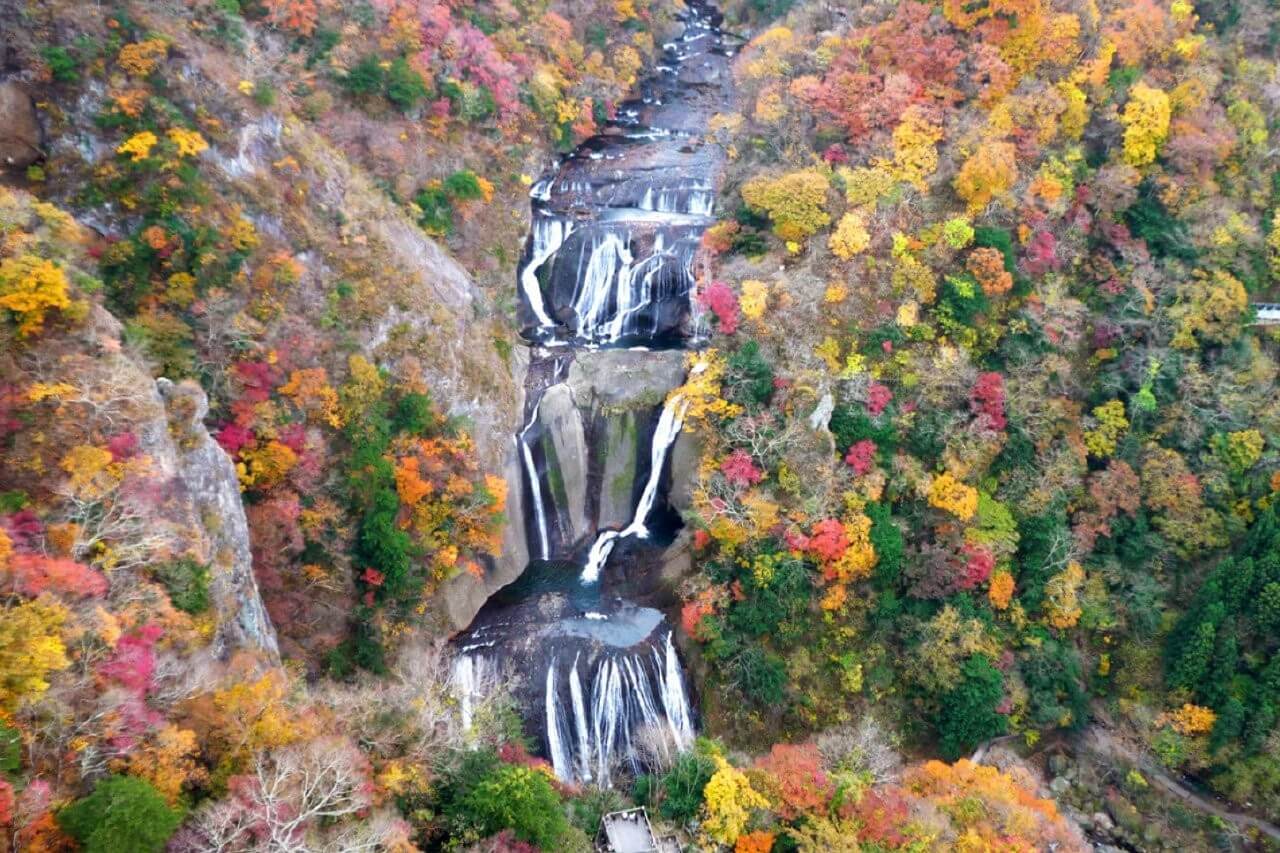 🍂 隨季節變換的感官盛宴 由於瀑布坐落於群山環繞的溪谷中,隨著四季輪替,其周邊景觀會發生戲劇性的變化 : • 秋季:是袋田瀑布最絢麗的季節,整座溪谷會被紅葉與黃葉染上濃郁色彩,與潔白的水流形成強烈對比,從高空俯瞰猶如一幅巨大的天然畫卷 。 • 冬季:呈現出令人驚嘆的「冰瀑」奇景 。在嚴寒的低溫下,飛流直下的瀑布會逐漸結凍,整座巨大的岩壁被厚實的冰層覆蓋,展現出靜謐且神祕的銀白色世界 。 • 春夏季:則能見到翠綠的山林與豐沛水量交織出的清新美景