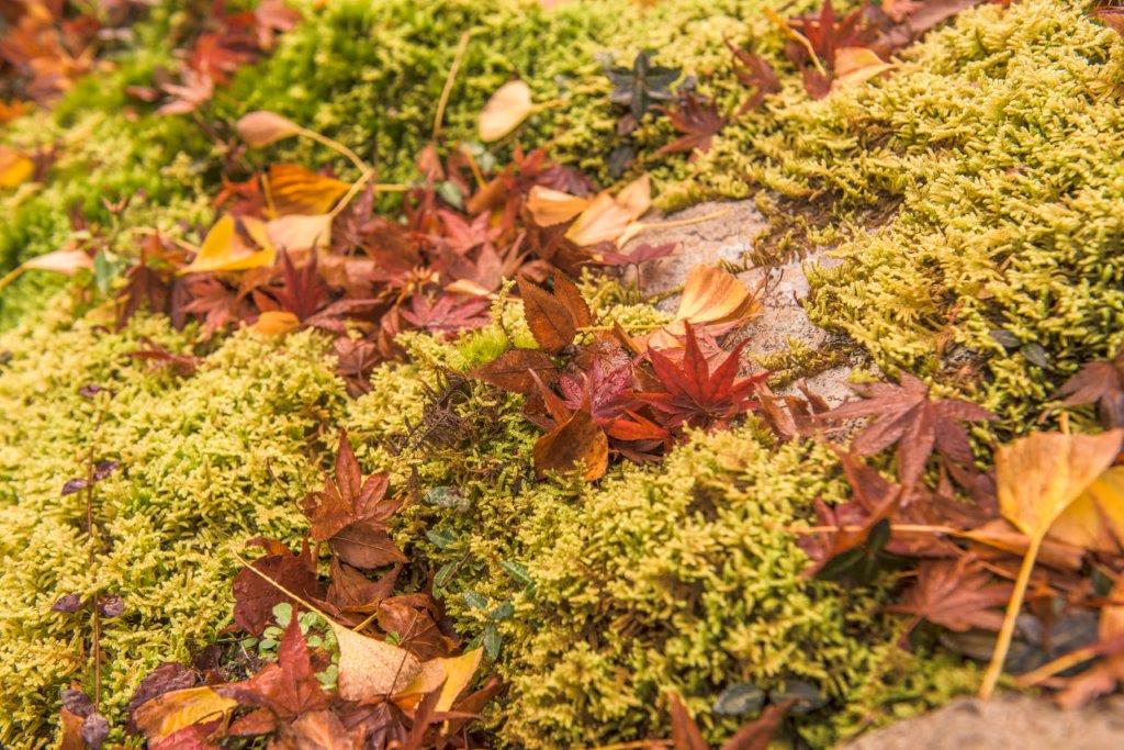 尚未抵達本堂前,入口處的建築旁已被紅色的楓葉染成了橘紅色的世界,地面也落滿了紅葉地毯,讓我不知不覺便花了不少時間拍攝。