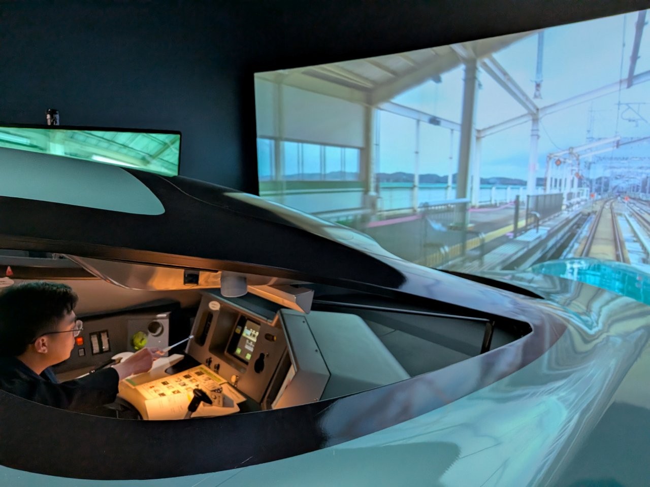 模擬器是館內的人氣設施之一。坐在仿真的駕駛座上,化身為駕駛員喊出「出發進行!」。照片中的是新幹線E5模擬器,雖然只是模擬,還是必須時刻注意限速與行車時間並操作,十分不容易,也深刻體會到駕駛員的辛勞。(※若是個人包場有含此區域,則可使用此模擬器。)