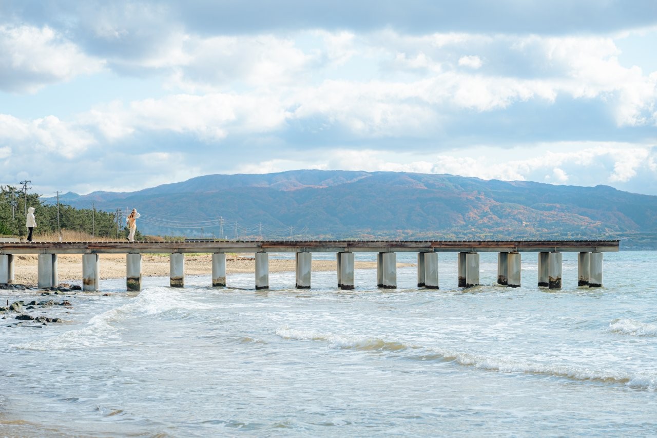 前往佐渡西三川黃金公園的路上,先停下來至あめやの桟橋(Ameya的棧橋)休息看海,這特別的棧橋名稱來自以往佐渡島運送日用雜貨時,停泊於此,後因為味噌釀造廠「飴屋」接管才有了這樣的稱呼。站在站橋上,天氣好時可見到二見半島、小木半島。 あめやの桟橋|網站、Google Map 地址:新潟県佐渡市河原田本町315