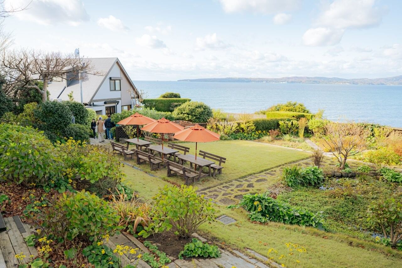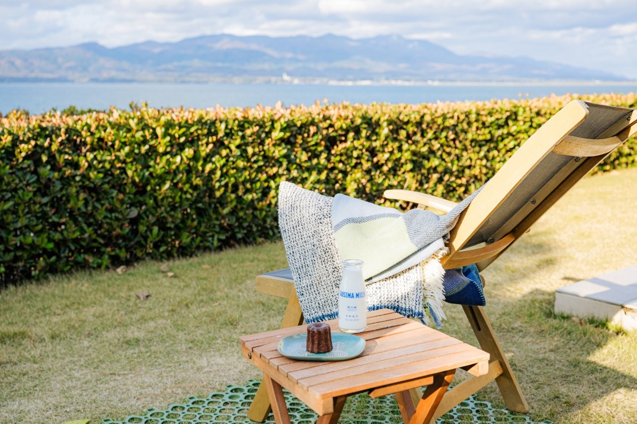 他們有自家製甜點、輕食,我點了可麗露和佐渡島牛奶,選了個戶外的位置享受這片海以及海風。