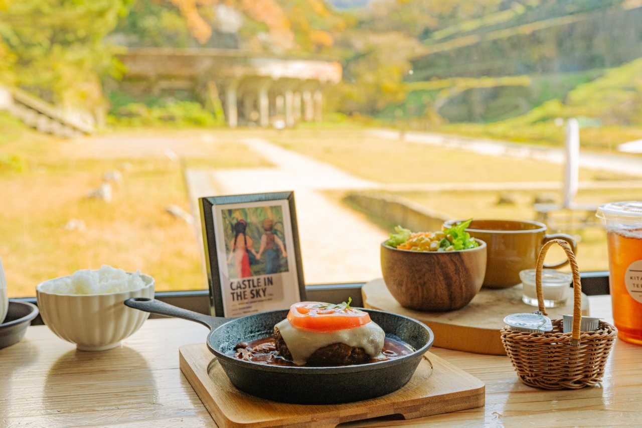 5年再訪北澤浮遊選礦場,境內開設了新的咖啡店「北沢Terrace」,窗景直對著50m濃縮機,十分特別。菜色特色是運用許多佐渡島產食材,他們的豬肉更是自家公司養的佐渡島黑豚。 我點了佐渡島黑豚製作的漢堡排,附湯、沙拉、白飯,1,600日幣,味道還不錯。 北沢Terrace|網站、Google Map 地址:新潟県佐渡市相川北沢町2/營業時間:11:00〜16:00(15:30L.O.),每週三公休。 北沢Terrace裡看到好多《天空之城》的人物擺飾、海報,尤其有好多的巨神兵,讓我這吉卜力大粉絲感到超級開心。